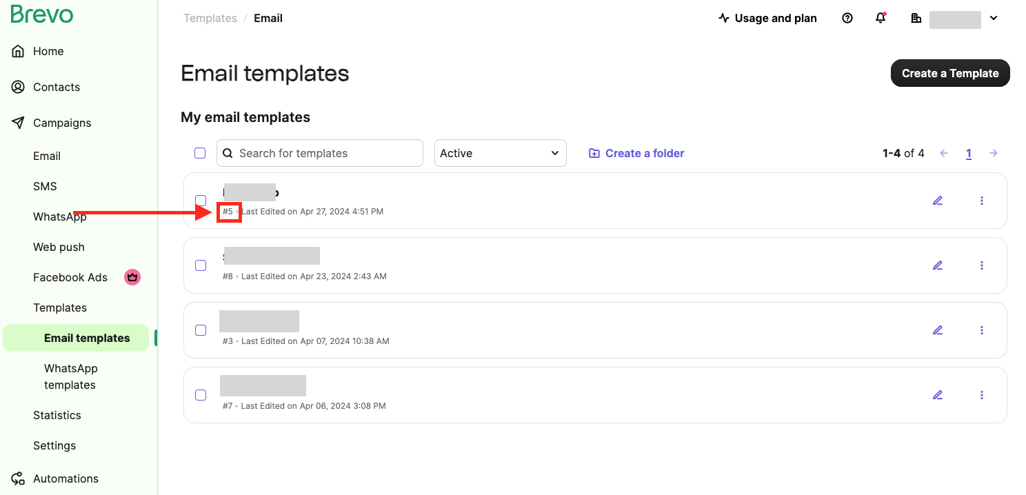 이때 sender의 서비스 이름이나 이메일 주소등을 각자에게 맞는것으로 수정해서 입력하고(이때 이메일은 brevo에 세팅해둔 sender 이메일과 같은것으로 입력하는 것을 권장한다.) 메일을 받을 사람의 이메일이나 이름은, Input으로 받는 값이 무엇인지 지정해주면 된다. 여기서 맨 마지막에 있는 템플릿 값은 brevo의 캠페인>템플릿>이메일 템플릿에서 해당하는 템플릿 번호로 입력.