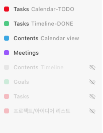 이렇게 설정하면, 완료된 일과 해야할일 (or 진행중인 일)을 구분해서 캘린더에서 볼수 있다. 완료된 일을 없애고 싶다면, 완료된 태스크만 보이게 설정해둔 타임라인뷰를 안보이도록 설정하면 된다.