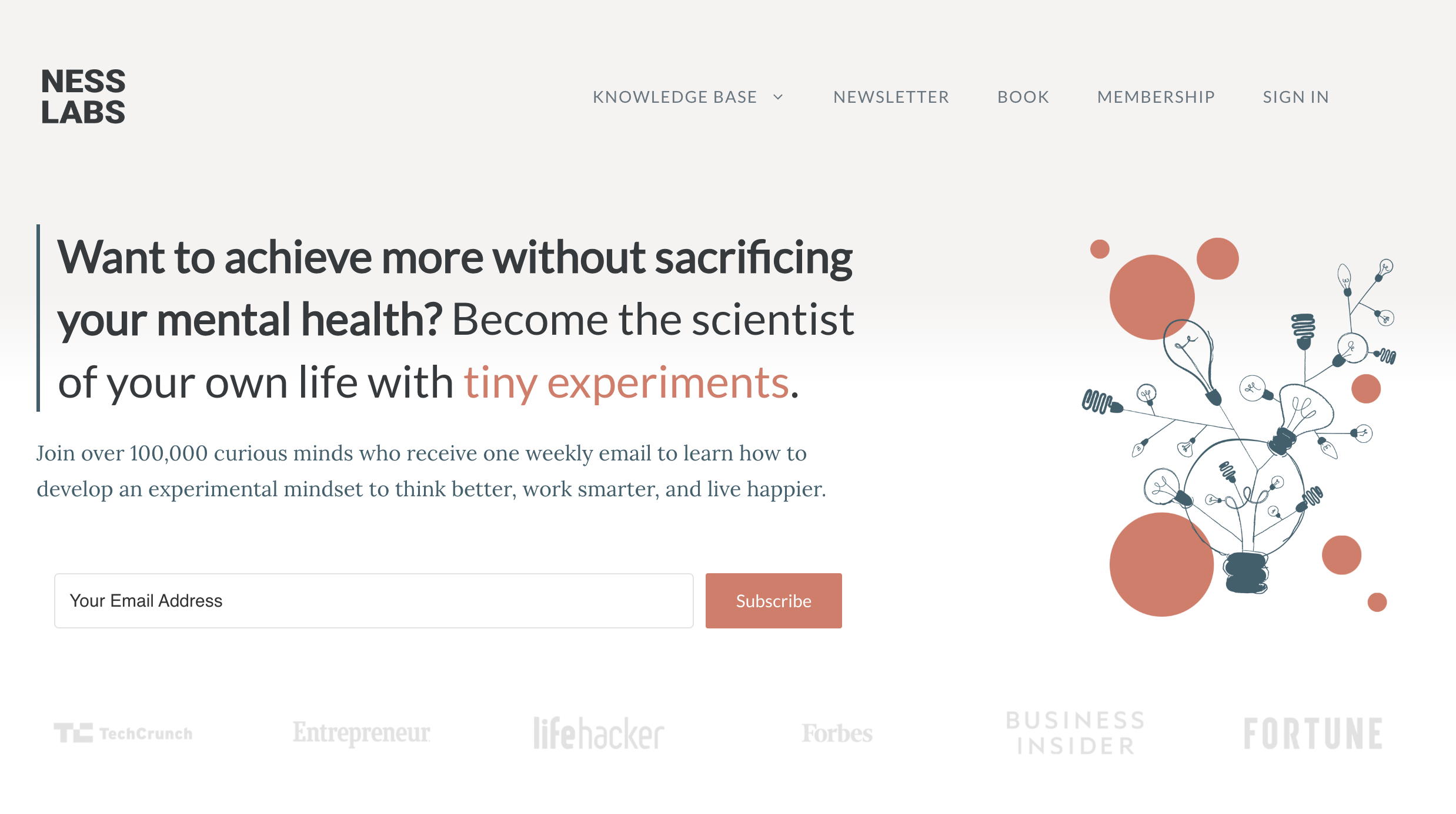 정신 건강, 생산성, 그리고 창의성을 향상시키기 위한 콘텐츠와 도구를 제공하는데, 뇌 과학에 기반한 학습 자료와 심리학 콘텐츠들이 대표적이다. 자기계발에 관심 있는 사람들을 위한 커뮤니티도 운영한다. 아티클, 뉴스레터, 워크숍 등을 통해 지속적으로 자기 계발 콘텐츠를 제공하고 있고, 사람들이 과로를 피하고 효율적으로 일할 수 있는 도구와 전략을 공유한다