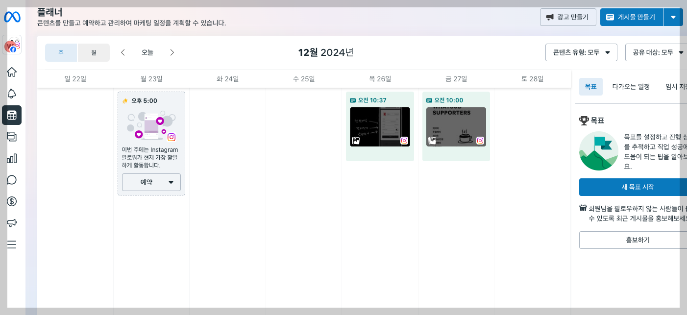 위의 표에서 비교하지는 않았지만, 무료로 인스타그램 콘텐츠 발행을 예약하려면 메타가 제공하는 크리에이터 스튜디오를 사용해보는것도 좋다. 나는 최대한 비용을 절약하기 위해 인스타그램은 칸바나 메타의 크리에이터 스튜디오를 사용한다. (Canva(칸바)는 인스타그램 콘텐츠 제작때문에 어차피 유료로 이용중이고, 유료로 이용할 경우 인스타그램 계정 연결과 포스팅 예약 기능을 제공한다.)