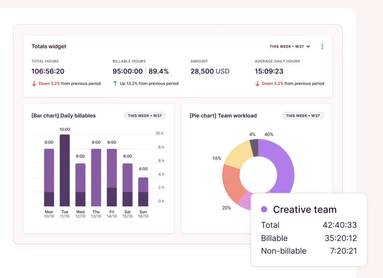 | Starter | $9/월 | 팀 단위 관리, 타임시트 승인, 정교한 리포트 |