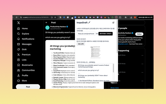 AI 기반 소셜 미디어 콘텐츠 초안 생성 도구. X(트위터), Threads에서 콘텐츠를 추출하고 한국어 초안을 자동 생성합니다.
